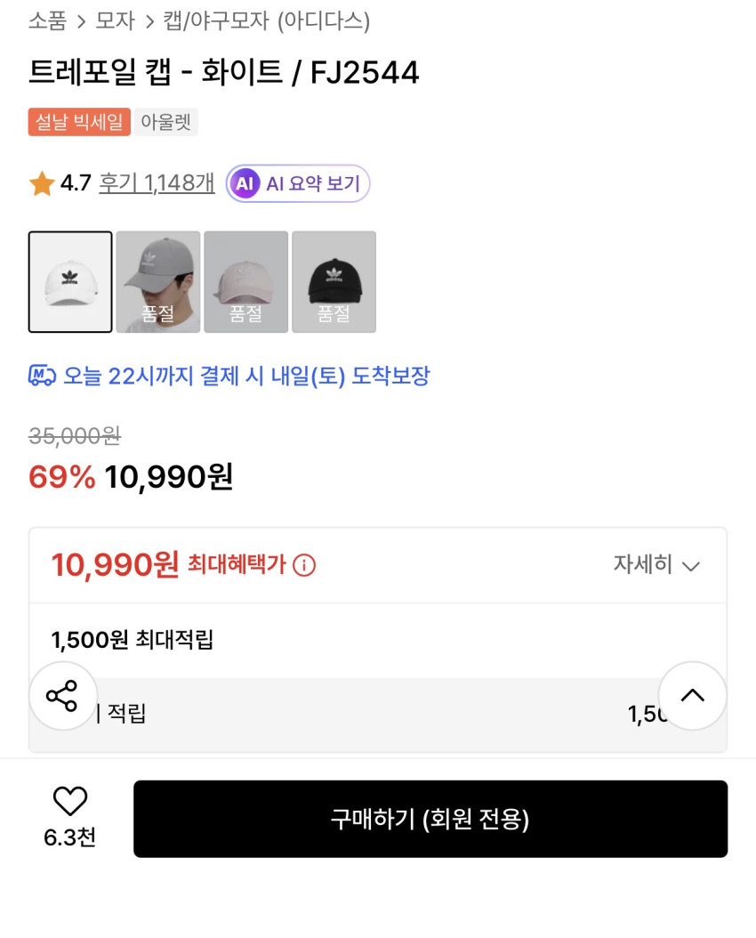 Mũ lưỡi trai Adidas Trefoil – Trắng