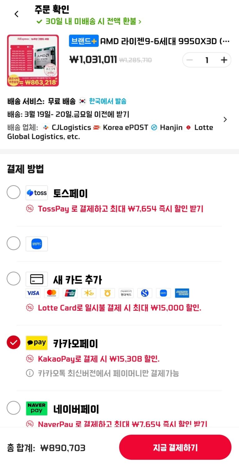 Giá này bao gồm chiết khấu ngay lập tức và giảm giá 4% cho Samka.Giảm giá 3% cho Lotte và Hyundai.Giảm giá 2% cho Shinhan và Kookmin.Giảm giá 1% cho Naver Pay.
