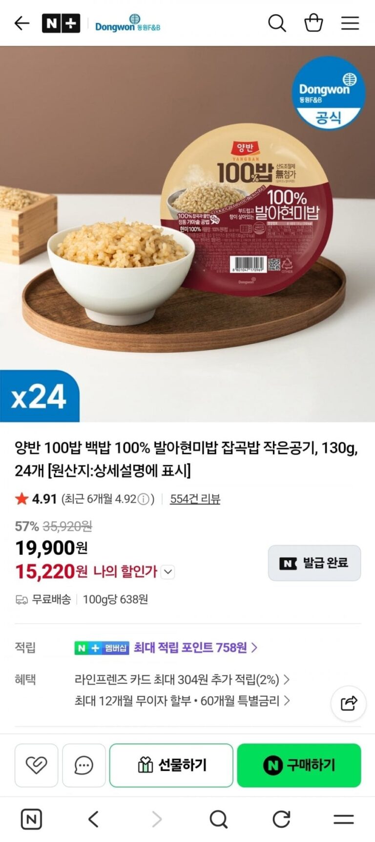 Tổng cộng 54 lon, 444 won mỗi lon