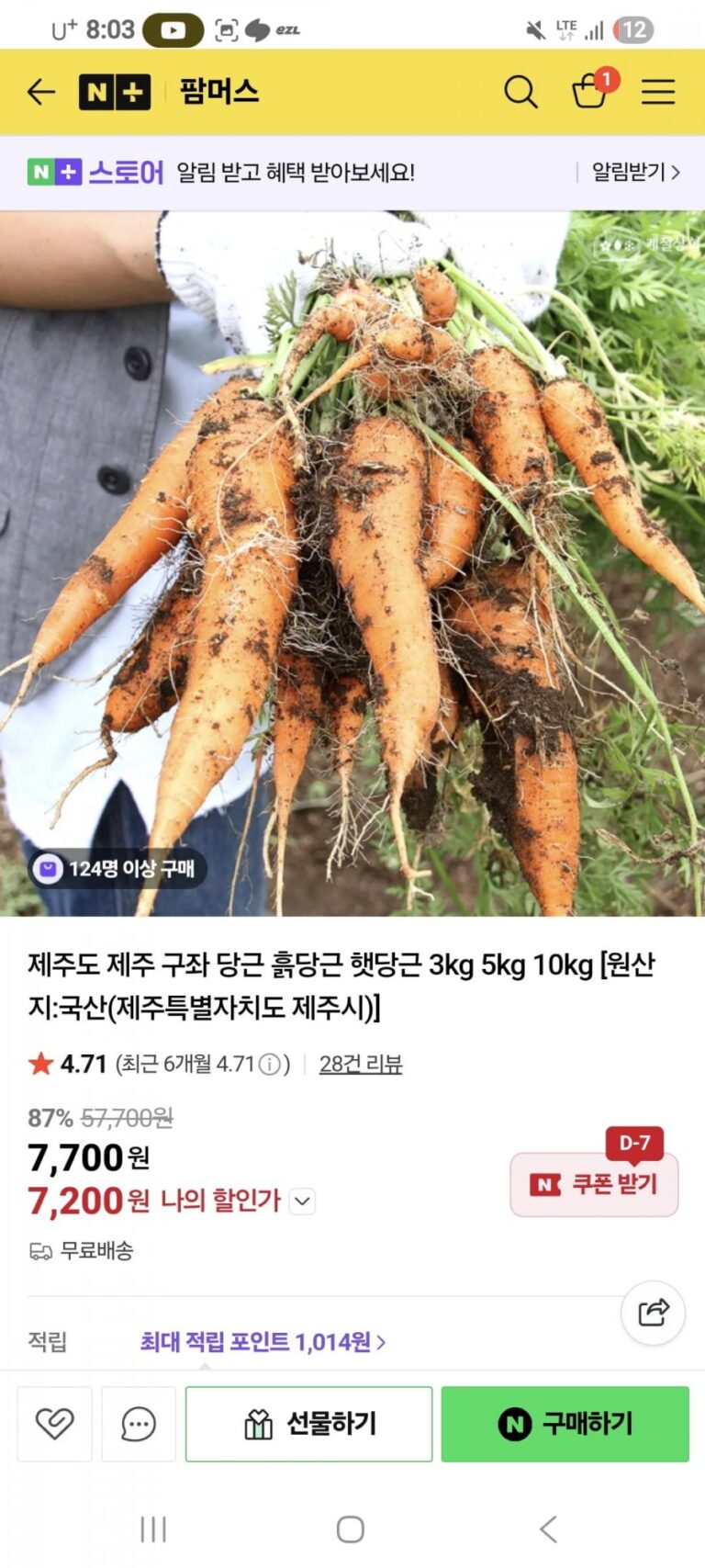 Nếu bạn đặt 72 lon và áp dụng phiếu giảm giá giỏ hàng thì đó là 36.300 won