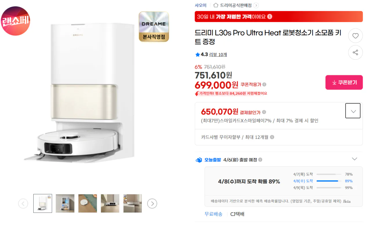 image.png [G Market] Robot hút bụi siêu nhiệt Dreamy L30s Pro (KRW) 650.070) (Miễn phí)image.png [G Market] Robot hút bụi siêu nhiệt Dreamy L30s Pro (KRW) 650.070) (Miễn phí)