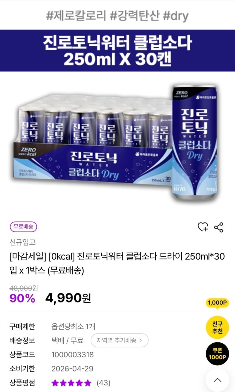 Có 15 loại và 2 hương vị để lựa chọn.Hạn sử dụng dài và hòa tan tốt trong nước nên dễ uống.Bạn có thể được giảm giá thanh toán bằng Kakao Pay khi thanh toán. Nếu bạn có phiếu giảm giá mua hàng lần đầu, nó sẽ có giá 15.819 won.