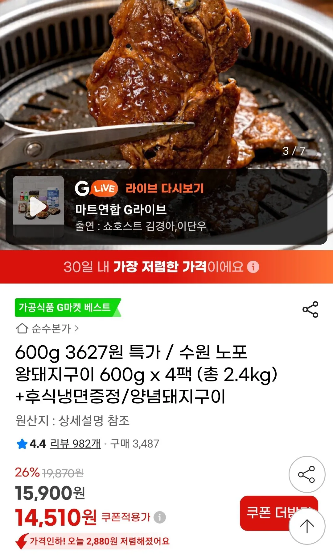 Giá Berry Good 3.627 won mỗi 600g