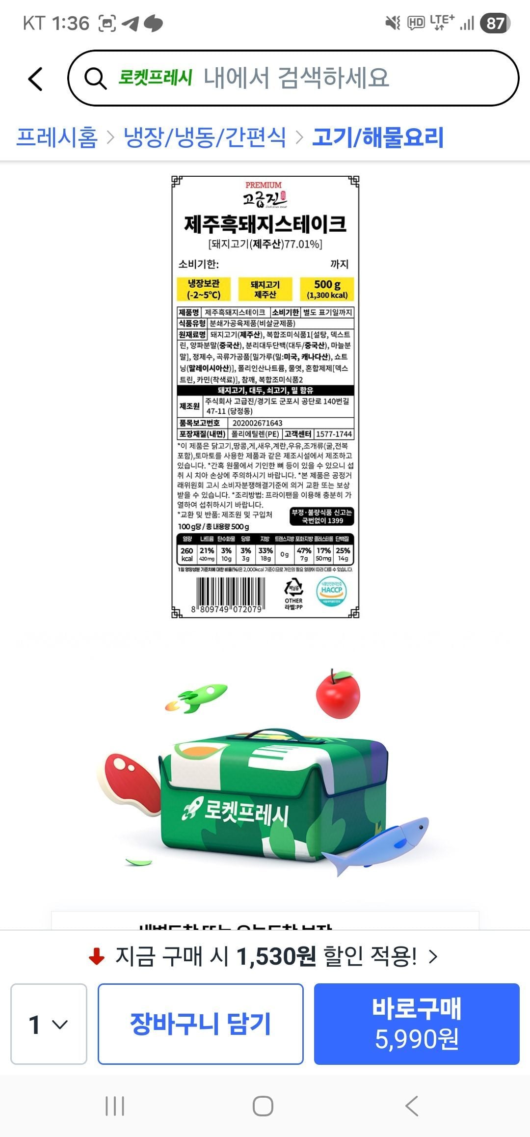 Thịt lợn đen Jeju 5 miếng 500g