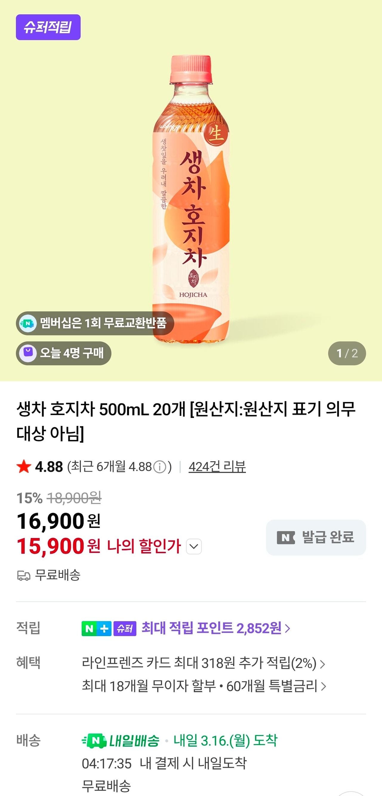 1.000 won nếu bạn đồng ý với Woongjin Alarm Phiếu giảm giá xuất hiệnCó chiết khấu khi thanh toán bằng thẻ Woori ở quầy thanh toán!Khi nói đến trà ô long trong các cửa hàng tiện lợi Hàn Quốc, loại duy nhất họ có là trà ô long đào, vì vậy tôi luôn lấy lá trà hoặc túi trà và uống trong cốc, nhưng điều đó thật khó chịu…Nhưng lần này, tôi rất vui vì Woongjin đã nghĩ ra thứ gì đó như thế này.Hãy coi đó là một loại trà ở cửa hàng tiện lợi ở Hàn Quốc. Vì chỉ có một ít…Cảm giác giống như uống trà ô long đặc pha với một ít nước.Nên dùng nếu bạn thích vị hơi đắng. Tốt cho việc giải khát.Vị trà còn đọng lại trong miệng sau khi uống không quá nồng và đủ nhẹ để bình tĩnh.Giá ở CU khoảng 2000~2200, có thể là một tháng trước. Tôi thấy đó là Một-Tím, nhưng bây giờ tôi không biết về nó. Tôi là người thỉnh thoảng hay đến cửa hàng tiện lợi…Nó không quá đặc nên không phù hợp với những người thích bóng cao như Oolong Hai.Thay vào đó, nó rất phù hợp nếu bạn khát nhưng không muốn uống nước nên đang tìm đồ uống hay gì đó.