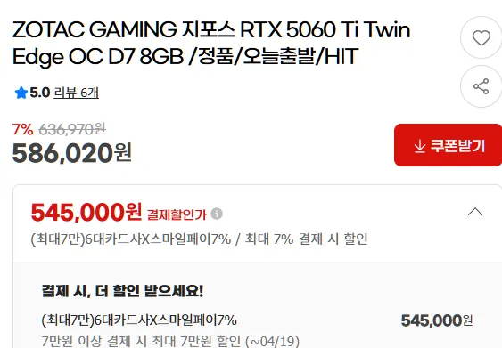 ZOTAC GAMING GeForce RTX 5060 Ti Twin Edge OC D7 8GB / Chính hãng / Khởi hành ngay hôm nay / HIT