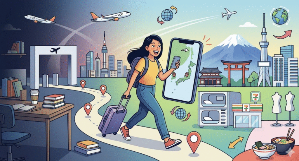 Chi phí bay linh hoạt: Giá vé đi Tokyo, Osaka và Fukuoka luôn biến động. Đôi khi vé đi Osaka rẻ hơn Tokyo đến 100.000 KRW. Bạn nên check giá thường xuyên để chọn thời điểm “hời” nhất.